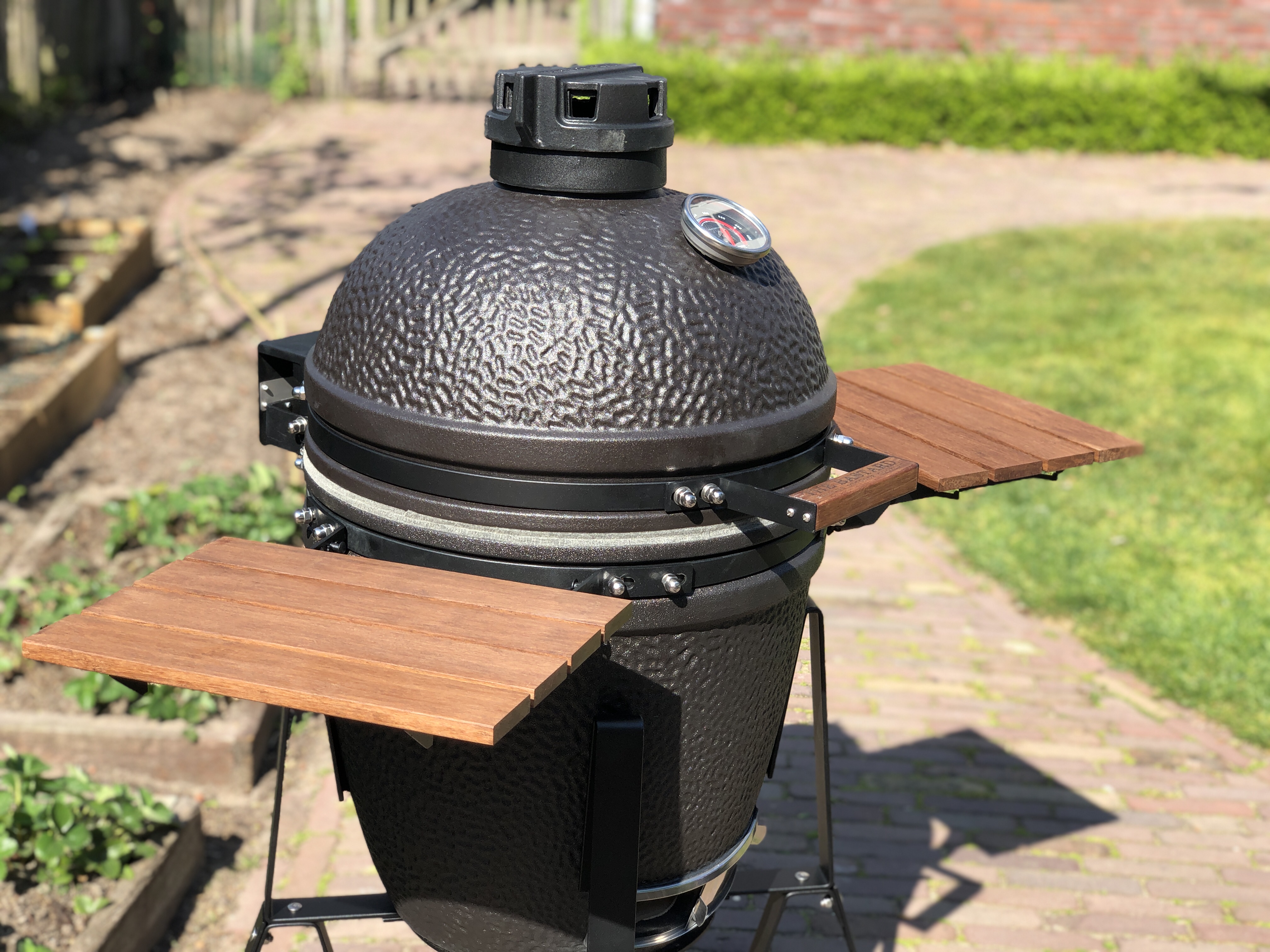 Ik ben blij met de nieuwe hardhouten zijtafels. Eerst was dit altijd bamboe en als ik een Kamado uit zijn winterslaap wekte en de regenhoes van de BBQ haalde schrok ik altijd weer wat het winterklimaat met mijn bamboe gedaan had. Het ‘weer’ was erin gaan zitten wat er voor zorgde dat ik of nieuwe zijtafels moest bestellen en de volgende winter binnen plaatsen, of flink moest schrobben. Ik deed het laatste, maar zonder echt tevreden te zijn. Nu met het sterkere hardhouten materiaal verwacht ik een langere levensduur.