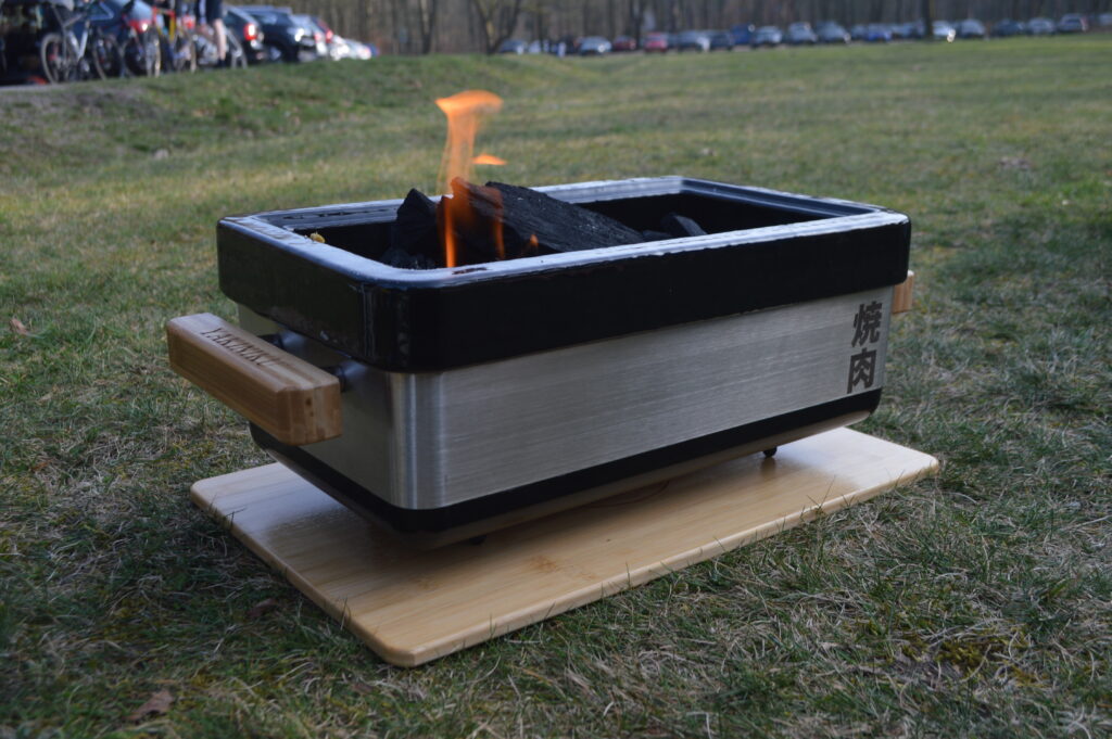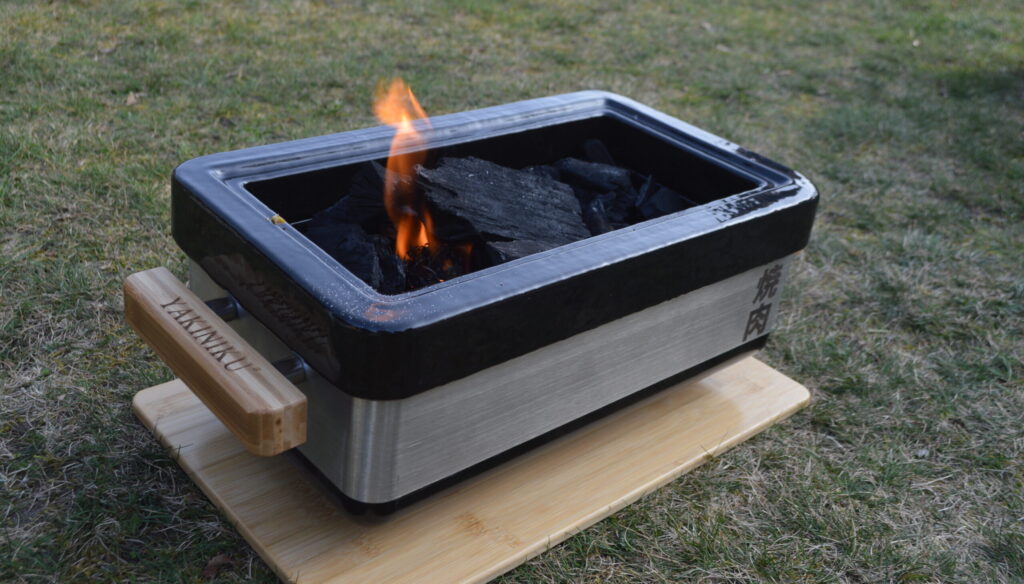 Wanneer de grill eenmaal staat, valt meteen op hoe robuust hij aanvoelt. De Shichirin PRO heeft een compact formaat, maar voelt zwaar en degelijk. Klein, maar fijn dus! Zijn uiterlijk springt in het oog en de aluminium behuizing is een goede keuze wat mij betreft, omdat hij zich hierdoor gelijk onderscheid van de reguliere shichirins die we kennen. Mooi om te zien dat dit concept populair genoeg is om door te ontwikkelen en te verbeteren.
